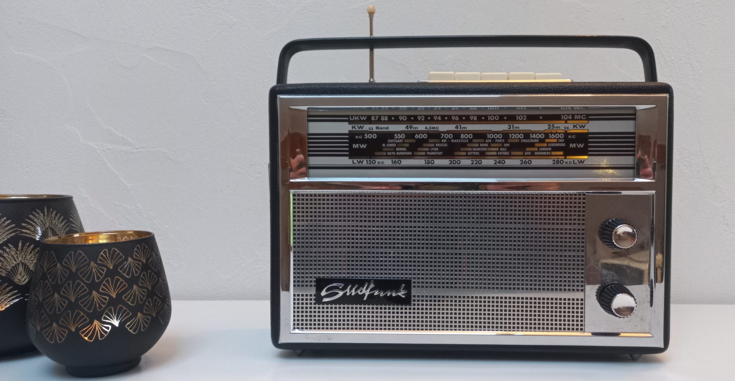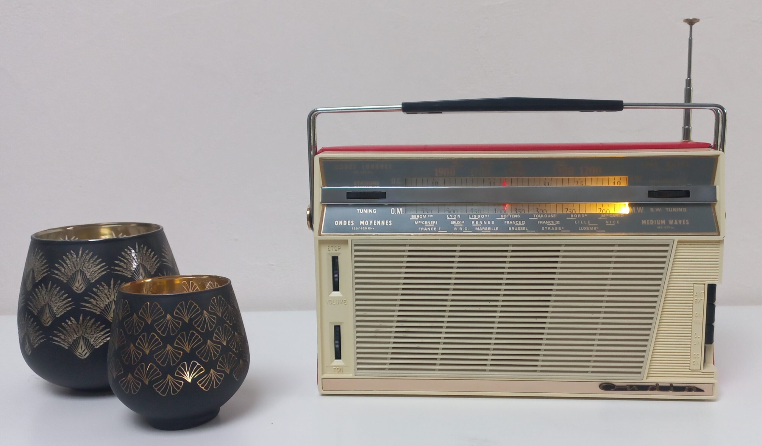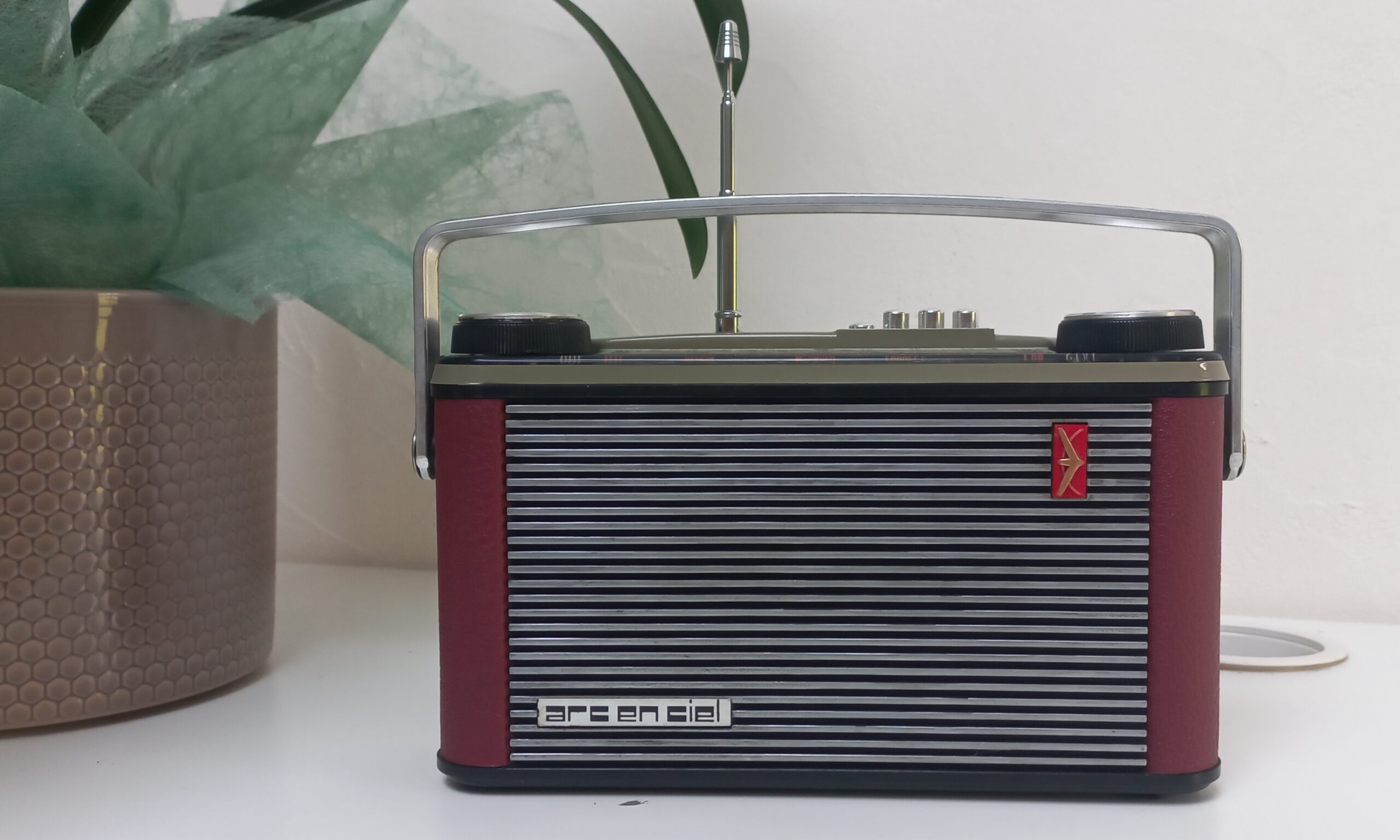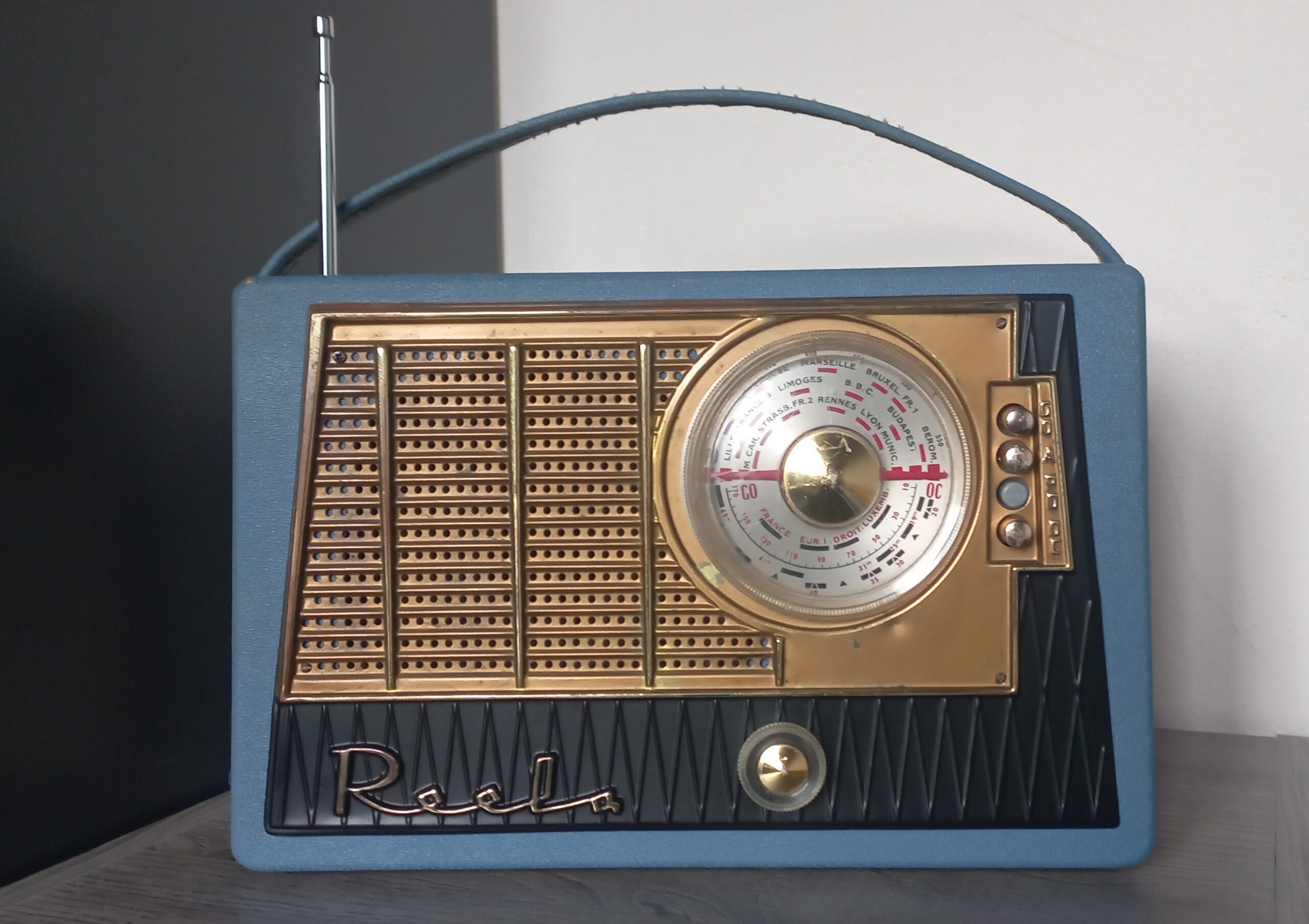 Modèle année 1963, converti en enceinte Bluetooth, autonome, rechargeable
