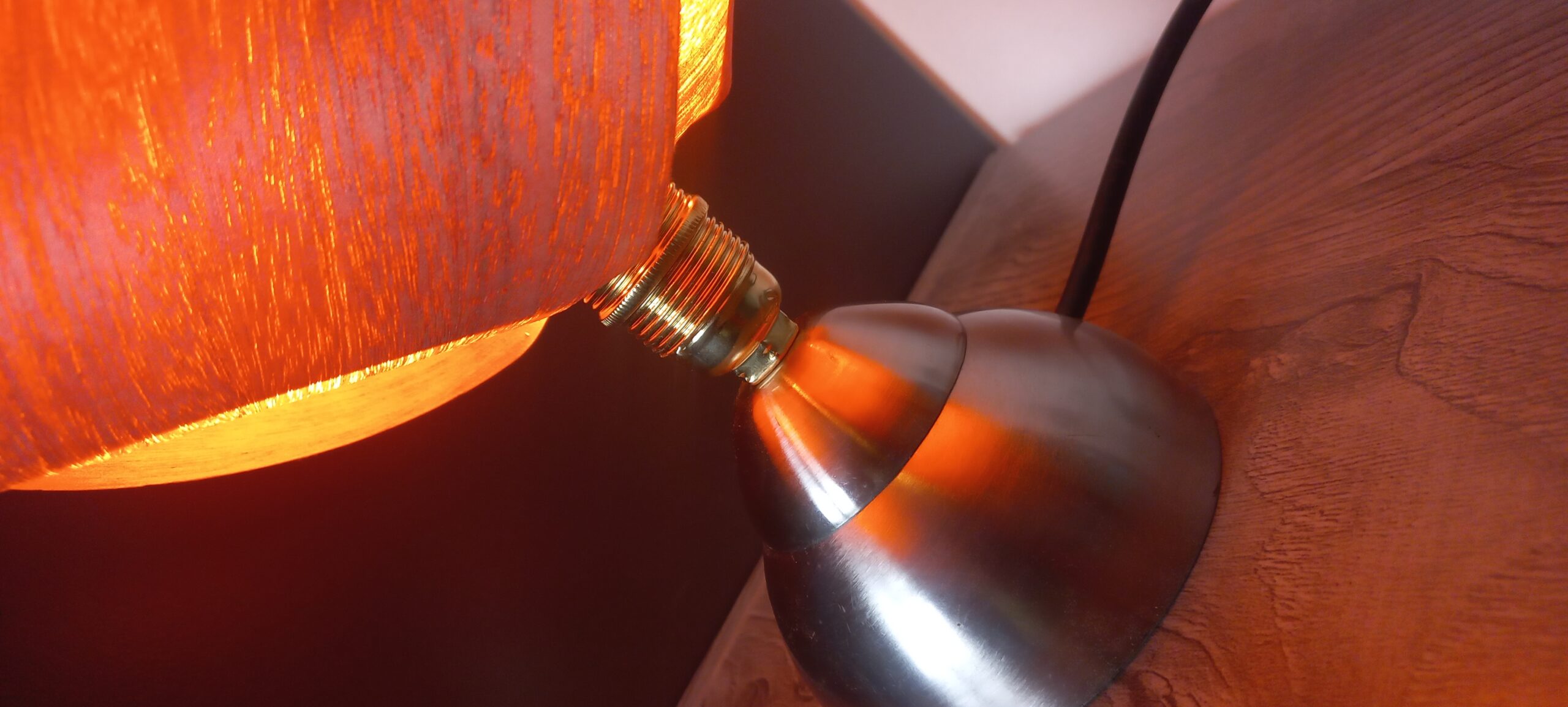 Chêne rouge, pied métal poli, douille laiton