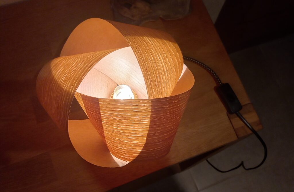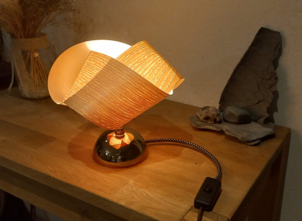 ruban en chêne, fil tressé, douille laiton , socle cuivré