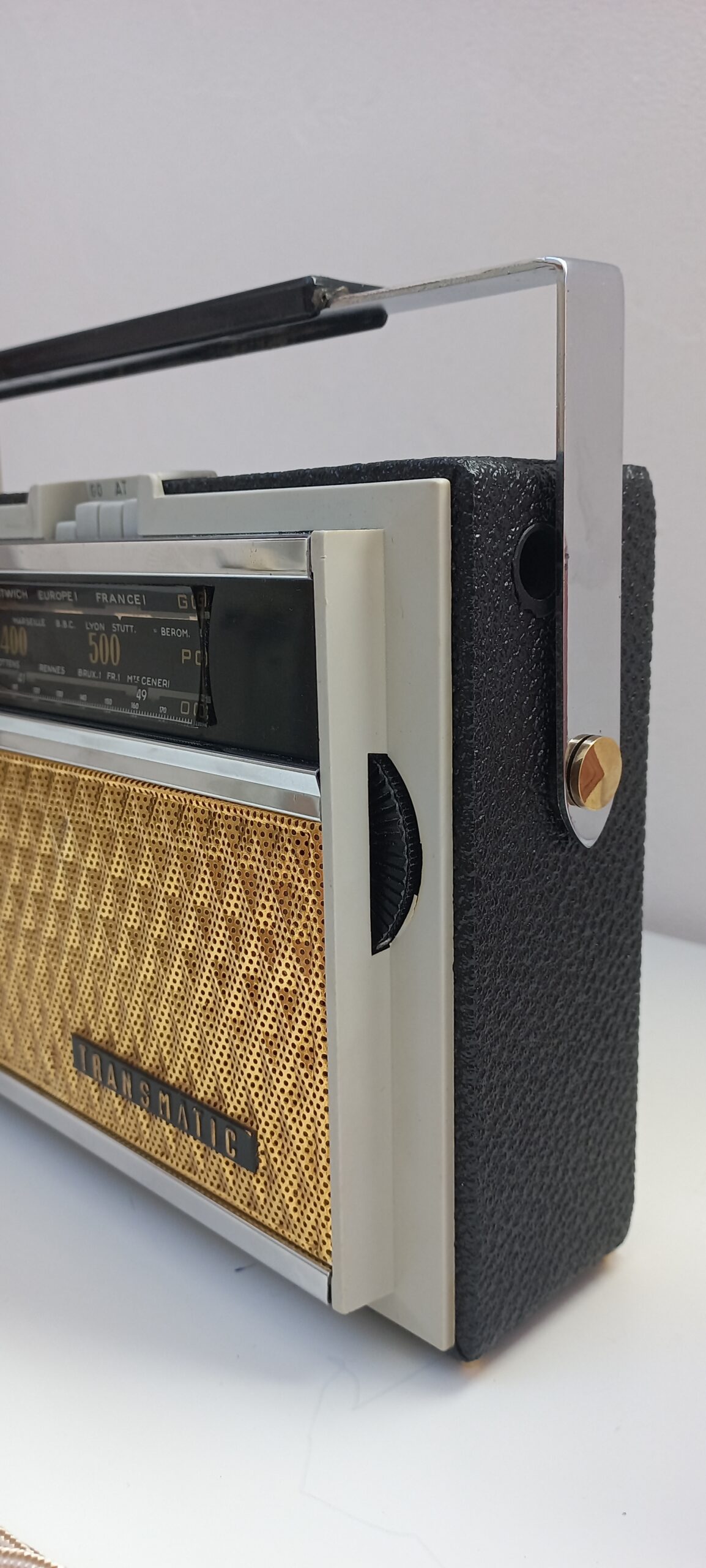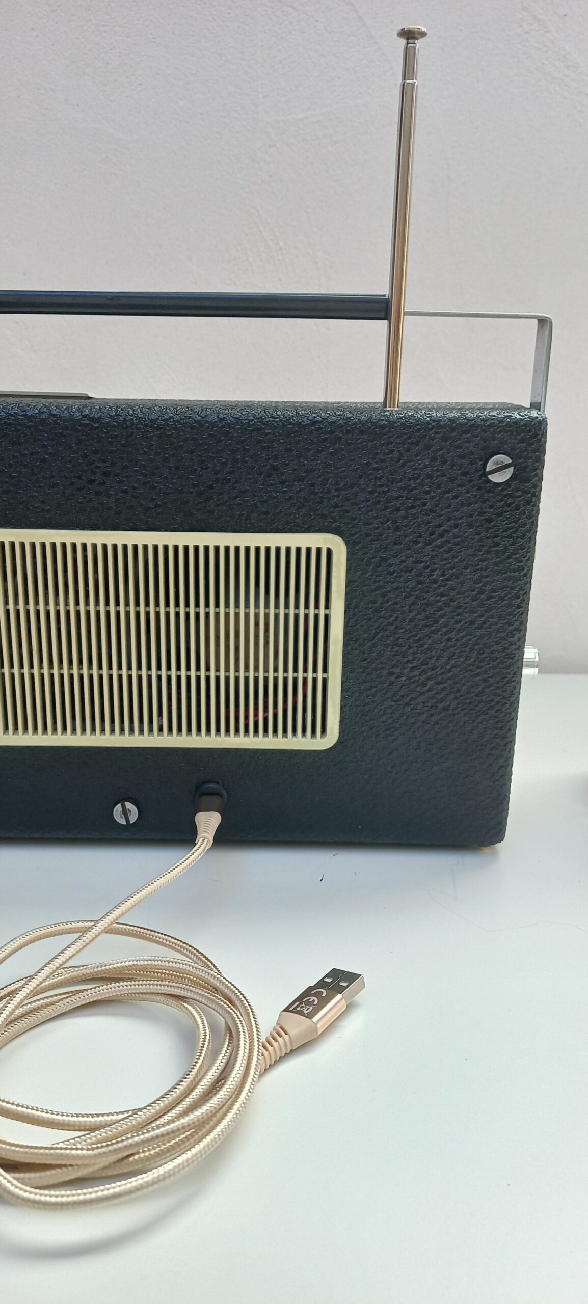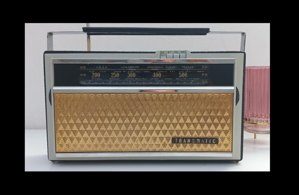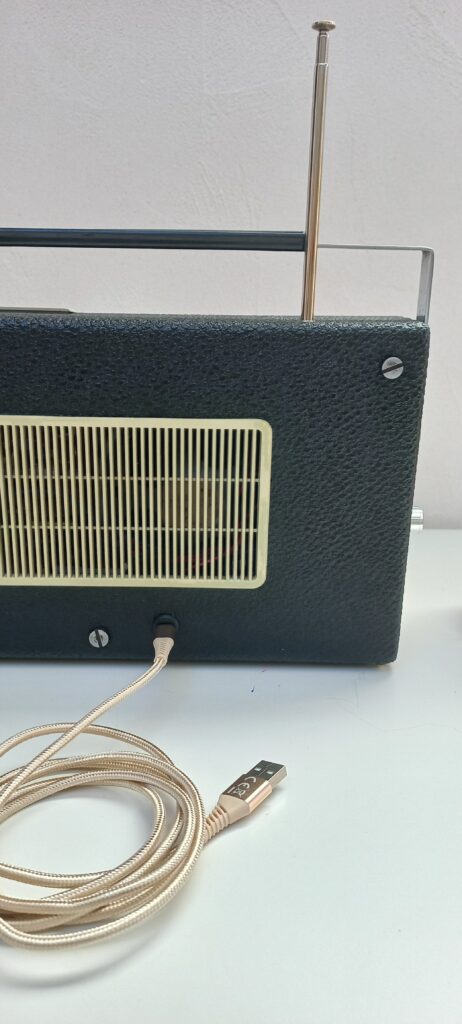 Modèle TRANSMATIC 7 de 1960, converti en enceinte Bluetooth rechargeable,