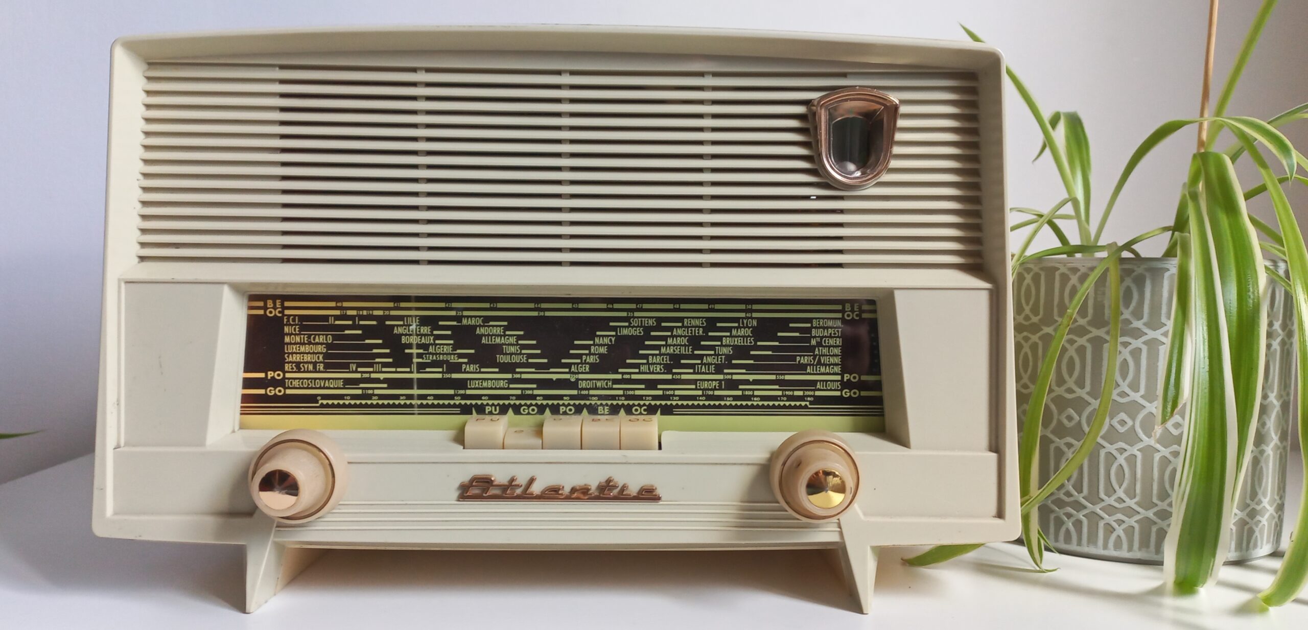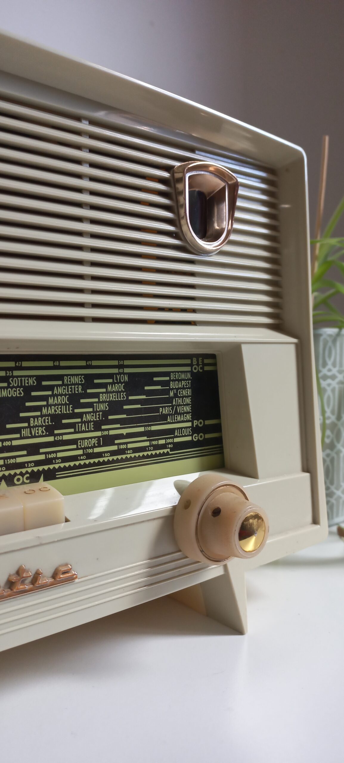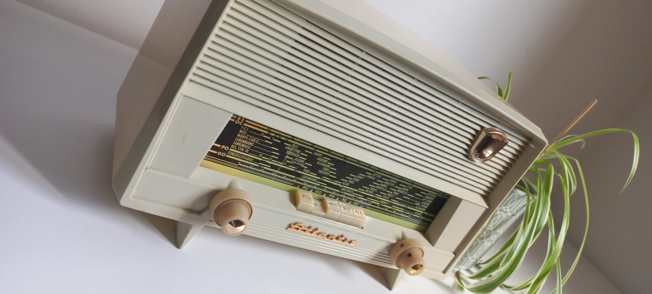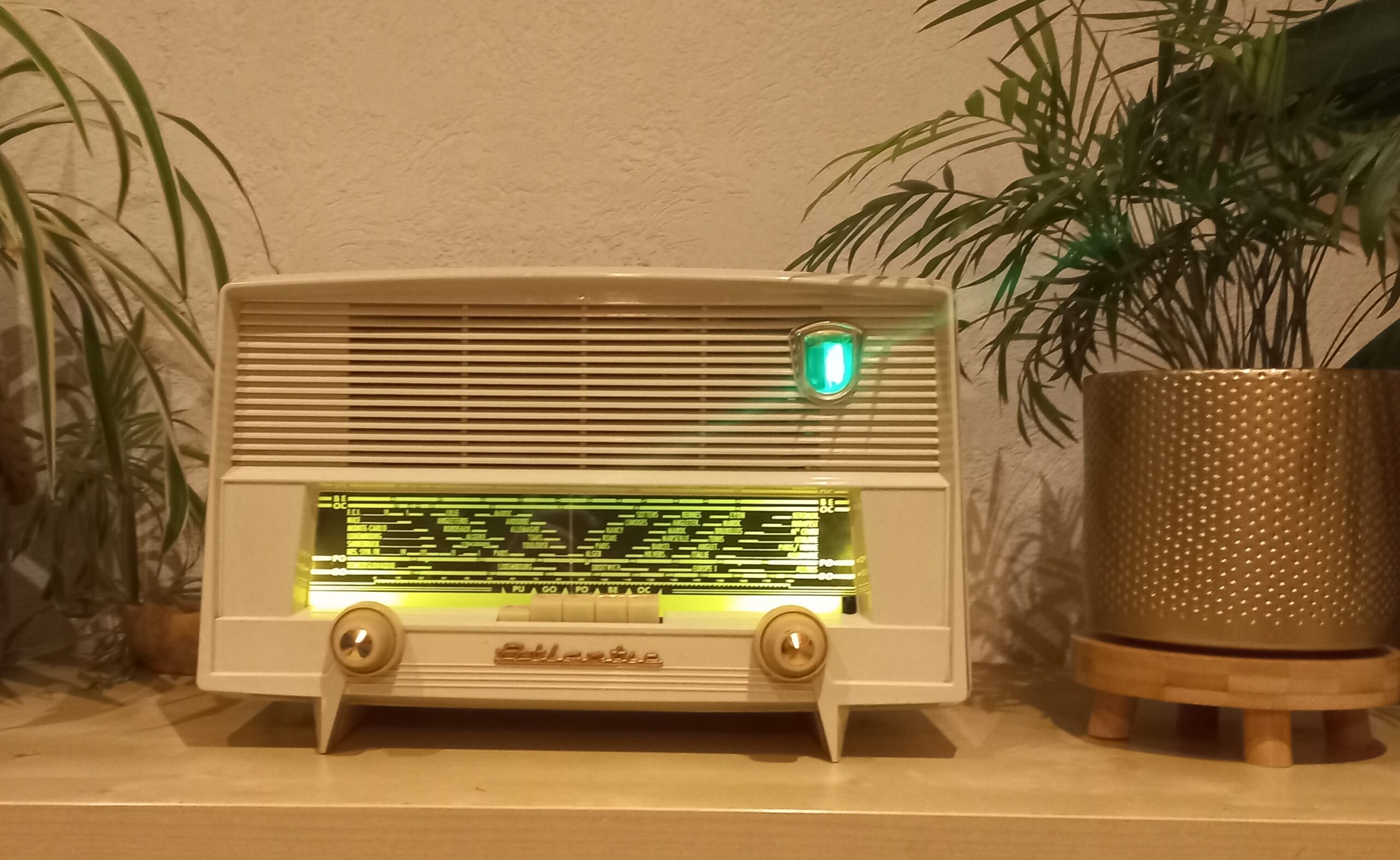 Modèle A81 de 1959, Celui des Praz de Chamonix, converti en enceinte bluetooth, FM, clé USB, télécommande. Pour Sophie et Jean-Denis