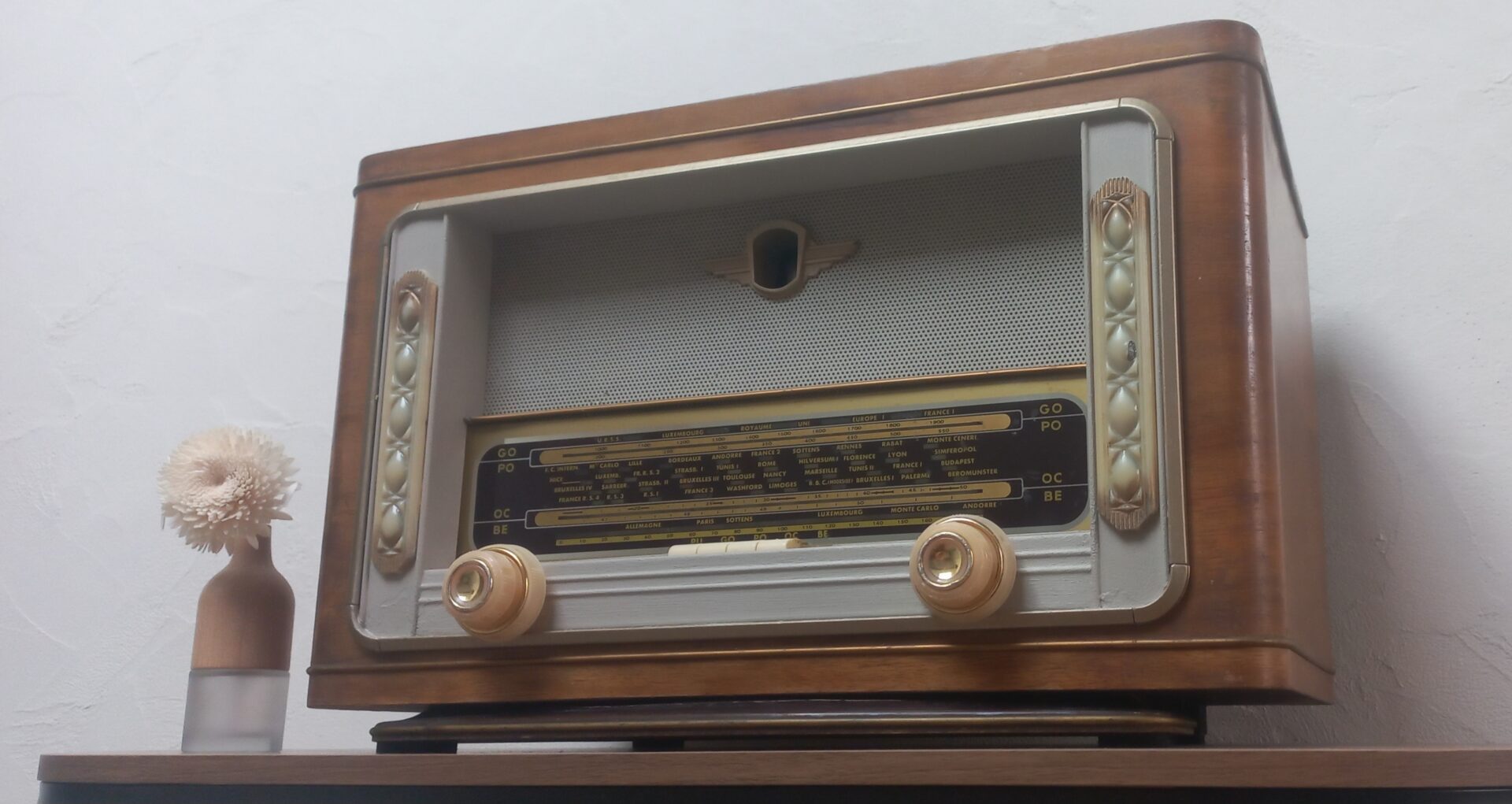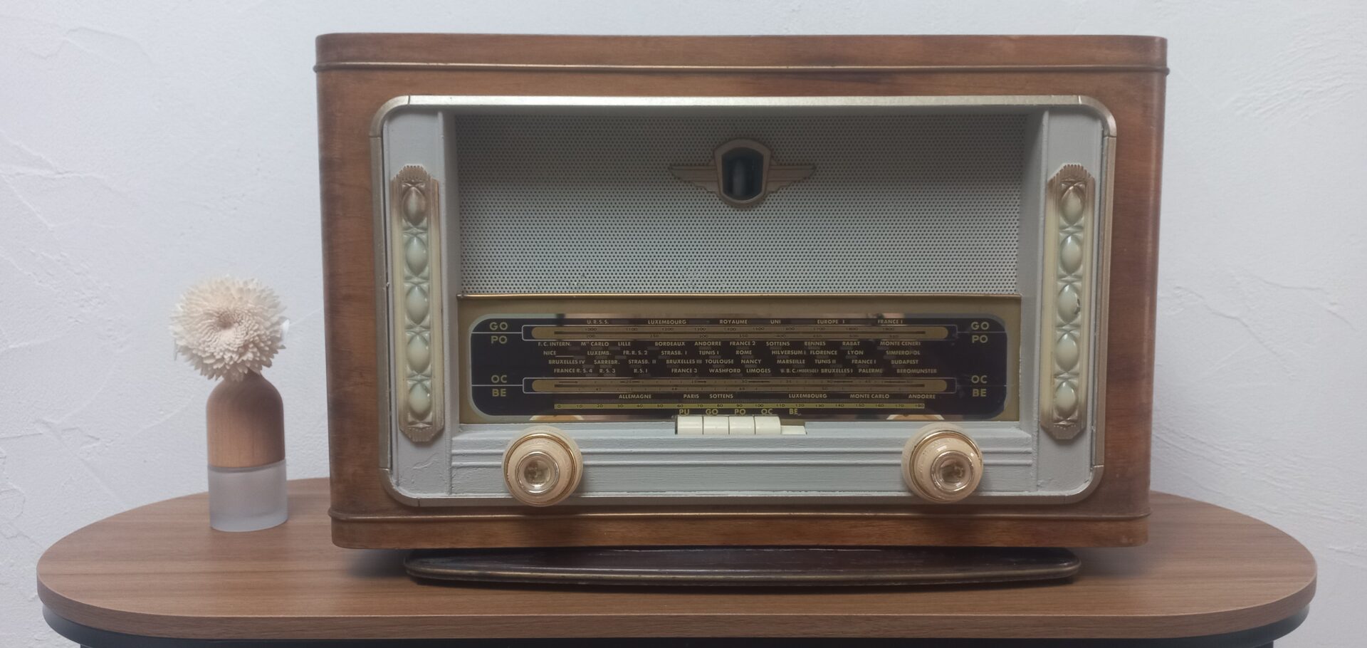 Modède de la fin des années 50, restauré et converti en enceinte Bluetooth, pour l’anniv surprise de Pauline ! 🤩🎂