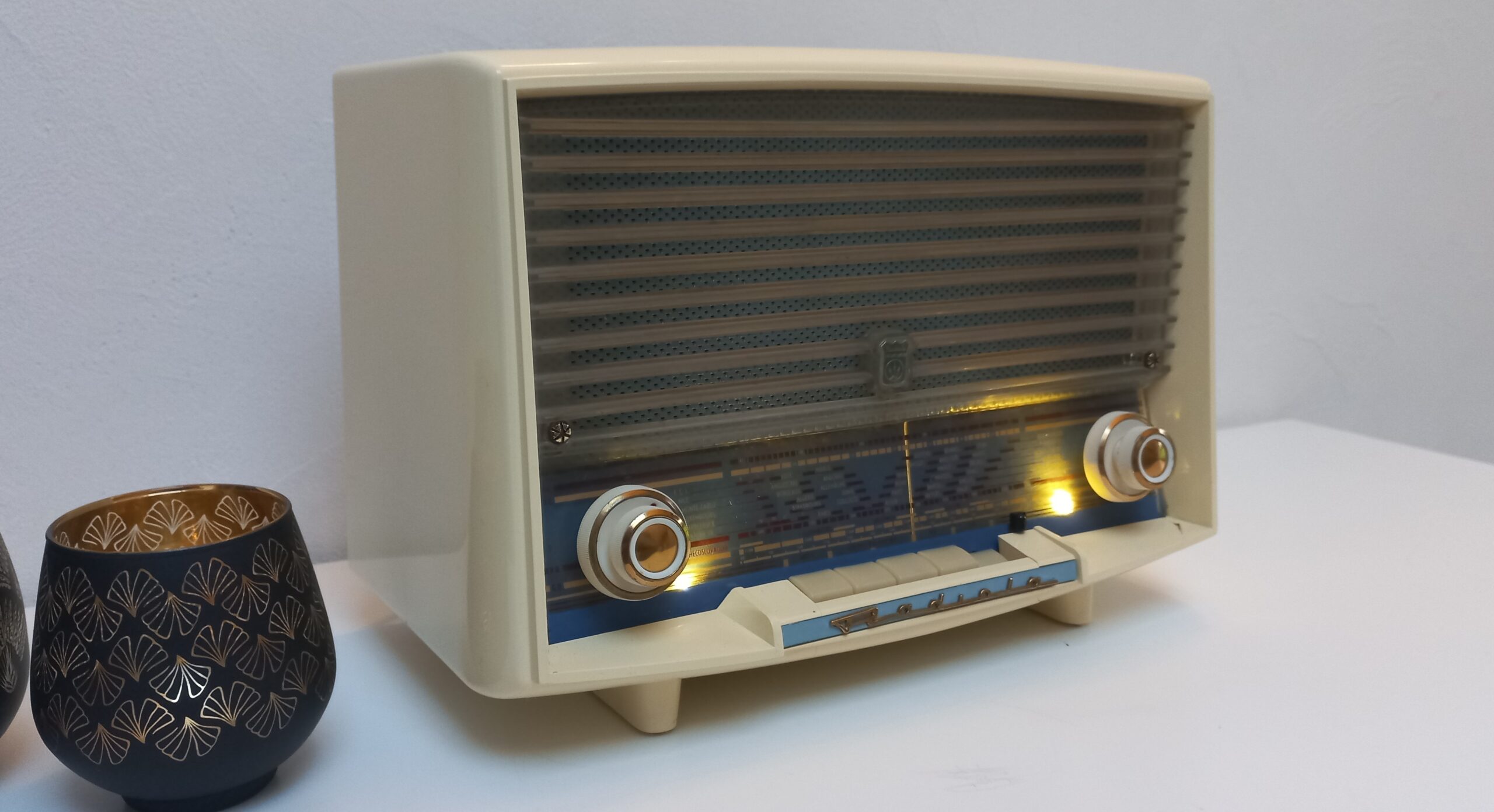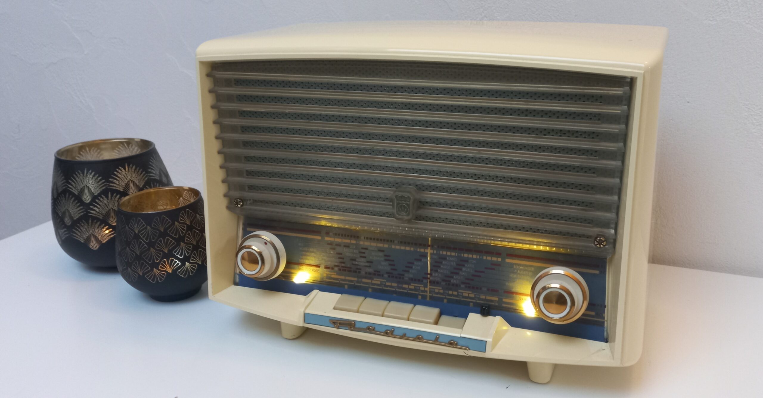Modèle RA378A de 1958, converti en enceinte bluetooth, FM, clé usb, 220V avec télécommande