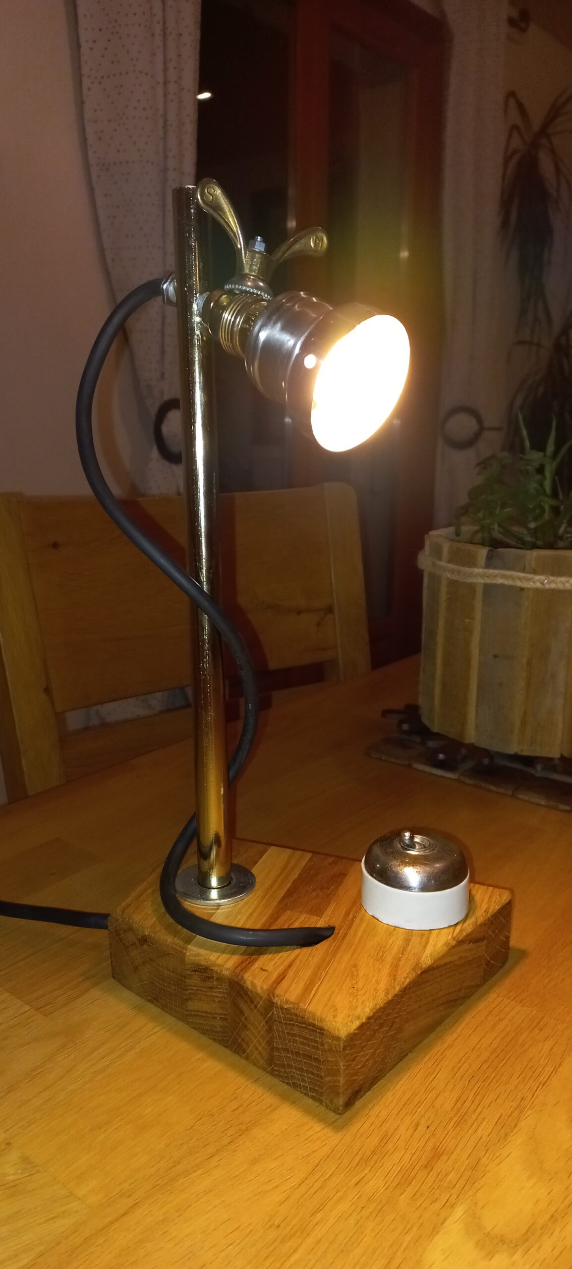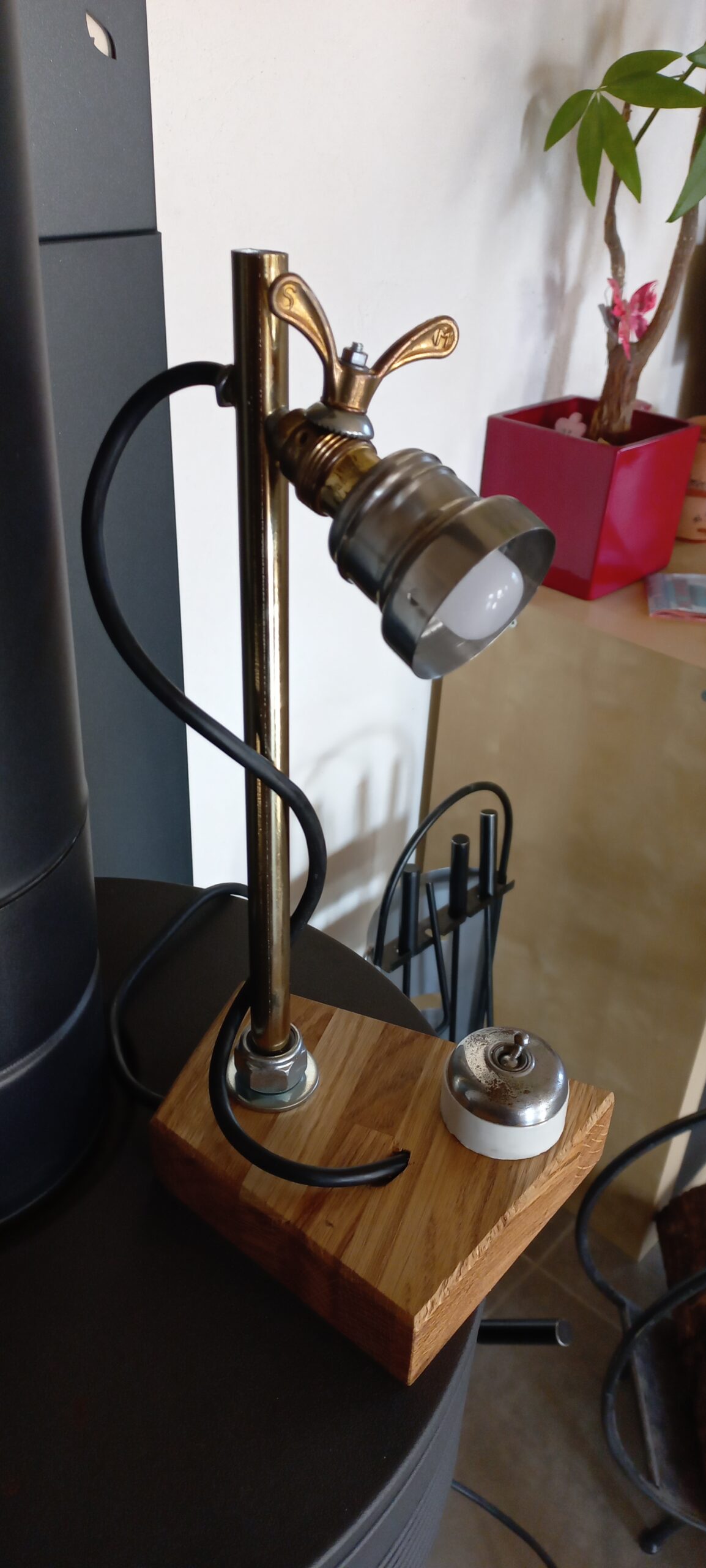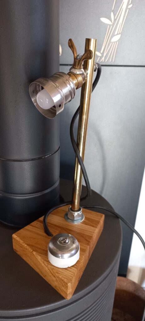 tringle à rideau de douche 🚿, interrupteur céramique d’époque, socle chêne massif.
